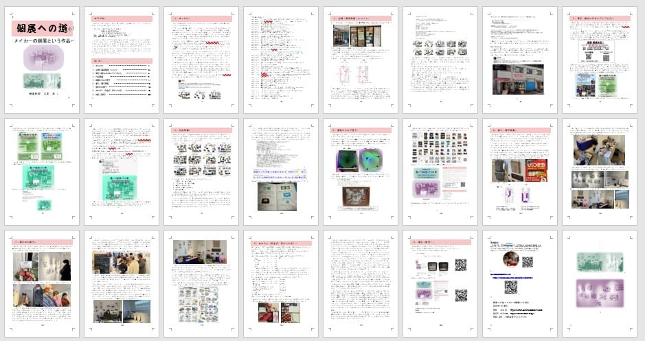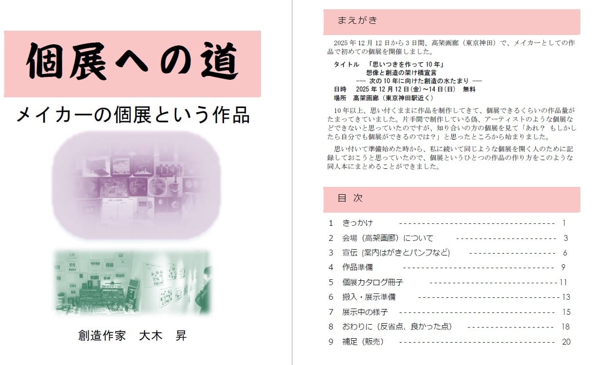 思い付いて準備始めた時から、私に続いて同じような個展を開く人のために記録しておこうと思っていたので、個展というひとつの作品の作り方をこのような同人本にまとめることができました。