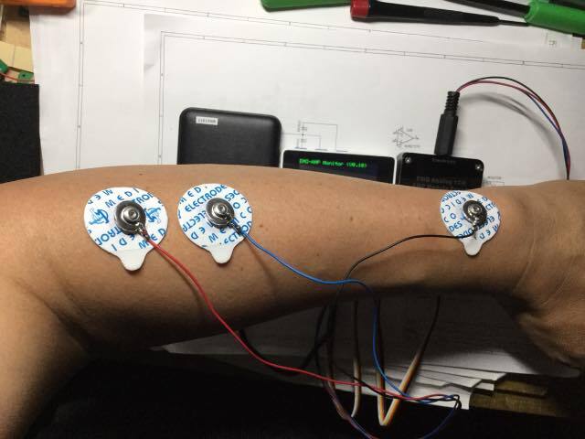 簡易筋電アンプ1CHユニット(EMG1CHAMP)は、1対の導出電極とアース電極で筋電図(EMG)をアナログ出力するアンプユニットです。ゲインとフィルタ特性をEMGに合わせているので筋電図専用のユニットになります。電源からのノイズを減らすために、CR2032電池を使用しています。出力は、マイコンで取り込めるようにDCオフセットが乗ったGROVEコネクタのアナログ出力とミニステレオジャックからアナログ出力が可能です。付属する電極パッドとの接続ケーブルは、自分でスナップにはんだ付けして好きな長さで自作してください。(線材は付属しません) 安定に計測するためにアクリルケースに入れた完成品ユニットです。